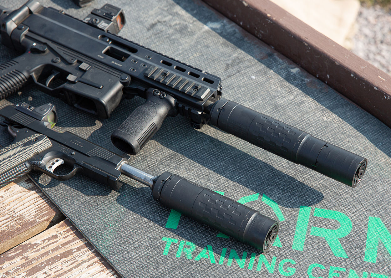 Because both calibers use .40-caliber projectiles, they’re too large for most compact and lightweight suppressors and get us into things like the Hybrid 46M. Built to handle much higher pressures—including rifle calibers like .450 Bushmaster and .458 SOCOM—it shrugs off the recoil and muzzle blast of .40 S&W and 10mm without issue.