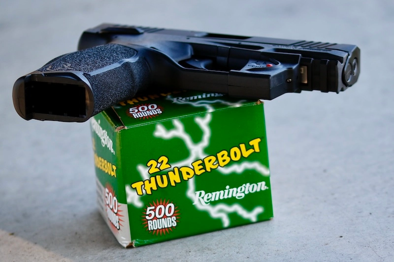 Some rimfire pistols are designed to mimic their centerfire counterparts. These typically will use a combination of blowback and short recoil. A few examples include the Taurus TX22, Ruger SW22, Smith & Wesson M&P 22.