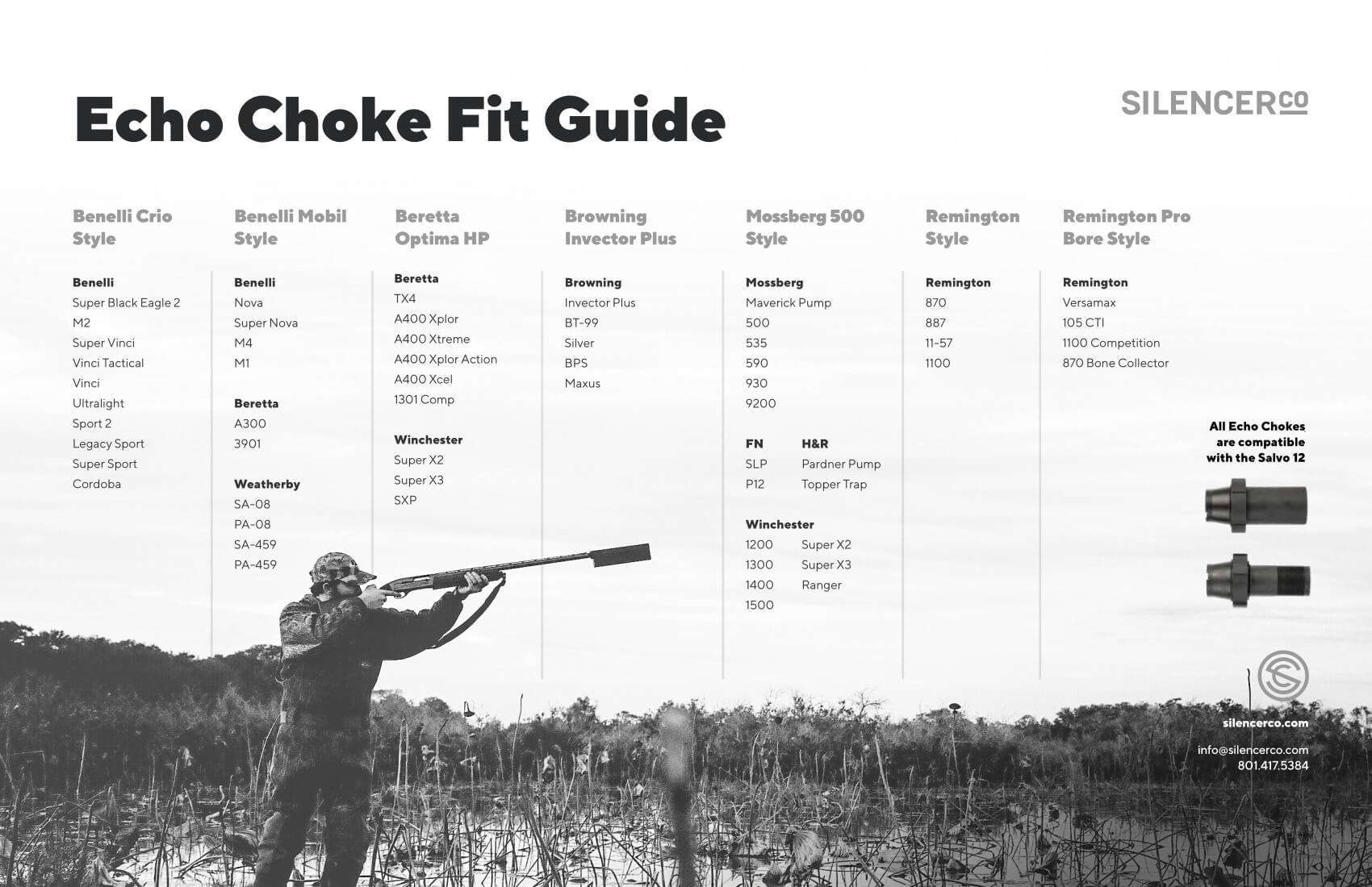 Single choke adapters for mounting the Salvo 12 shotgun suppressor. Choose the choke style for your specific shotgun and select the spread pattern from the dropdown menu.